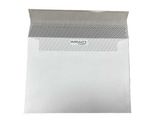 Envelopes can be sealed with a self seal gummed adhesive or a peel and seal strip.