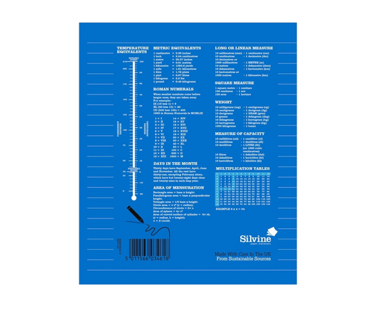 Silvine Exercise Book, Blue, 120 pages lined, 203mm x 165mm
